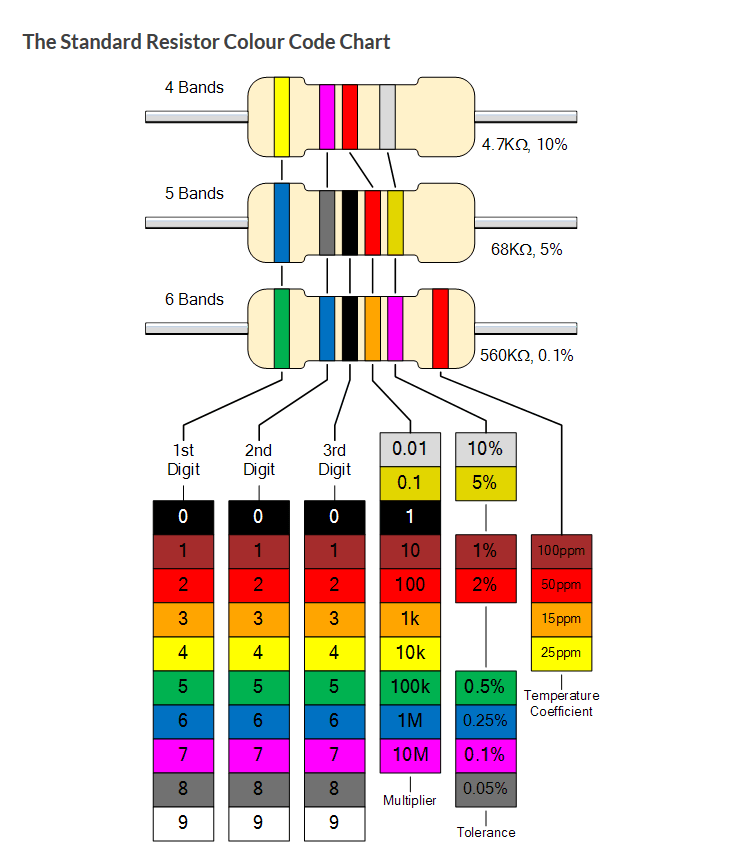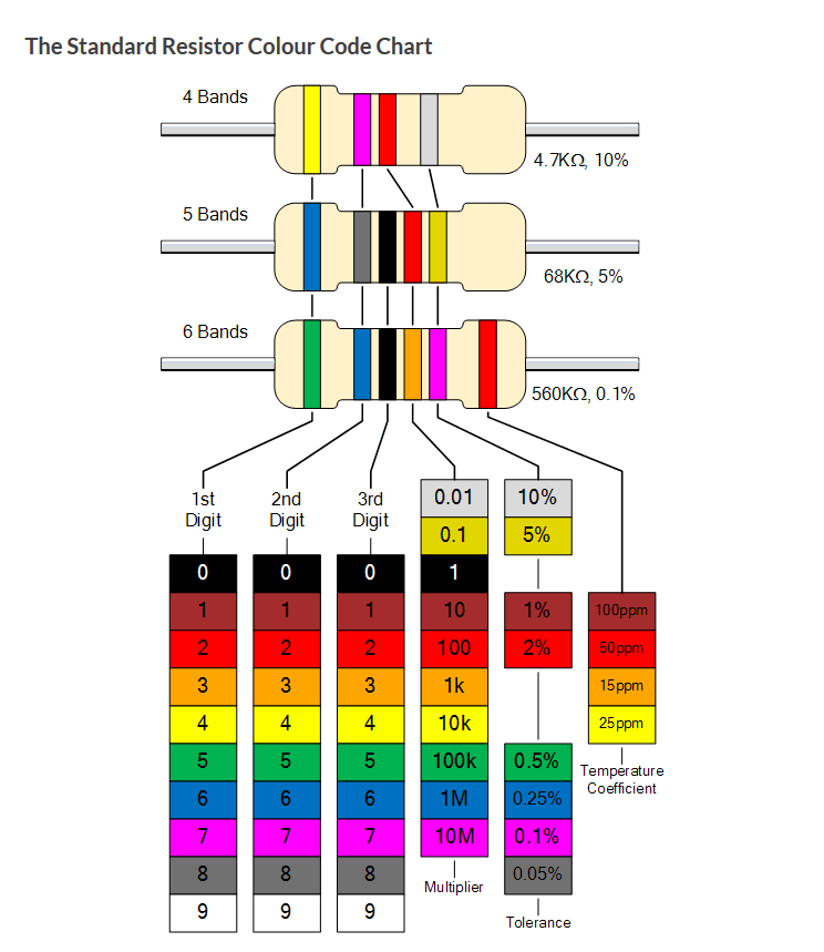 I codici colore standard per i resistori sono espressi nella maggior parte in questa forma: