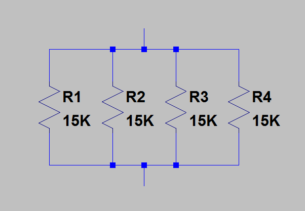 Se i resistori sono uguali, il valore totale di resistenza sarà il valore di un resistore diviso per il numero di resistori.