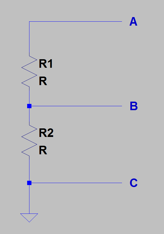 applicando una tensione ad A (con C a GND), su B troveremo una tensione che dipende dal valore dei due resistori, e questa formula ci dice quanto: