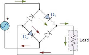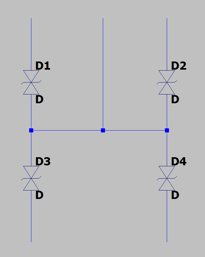 Personalmente, ho sempre trovato questa cosa geniale. Si noti però che la caduta di tensione è Vf * 2, poiché il flusso deve attraversare due Diodi, e “pagare il pizzo” ad entrambi.