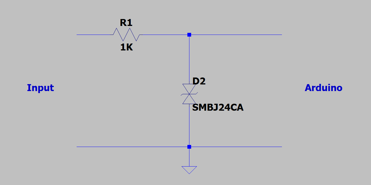 In aggiunta, qualora il segnale dovesse per qualche ragione diventare negativo, il flusso transiterebbe interamente nel diodo, proteggendo il piedino.
