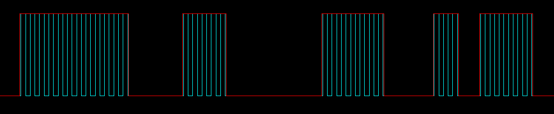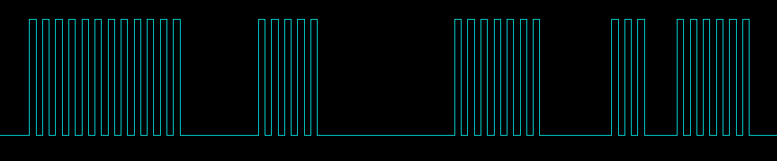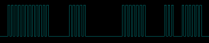 Ma se fosse così semplice sarebbe soggetto a disturbi, per cui gli impulsi acceso/spento non sono impulsi continui ma viaggiano su una portante, come si può vedere qui sotto: